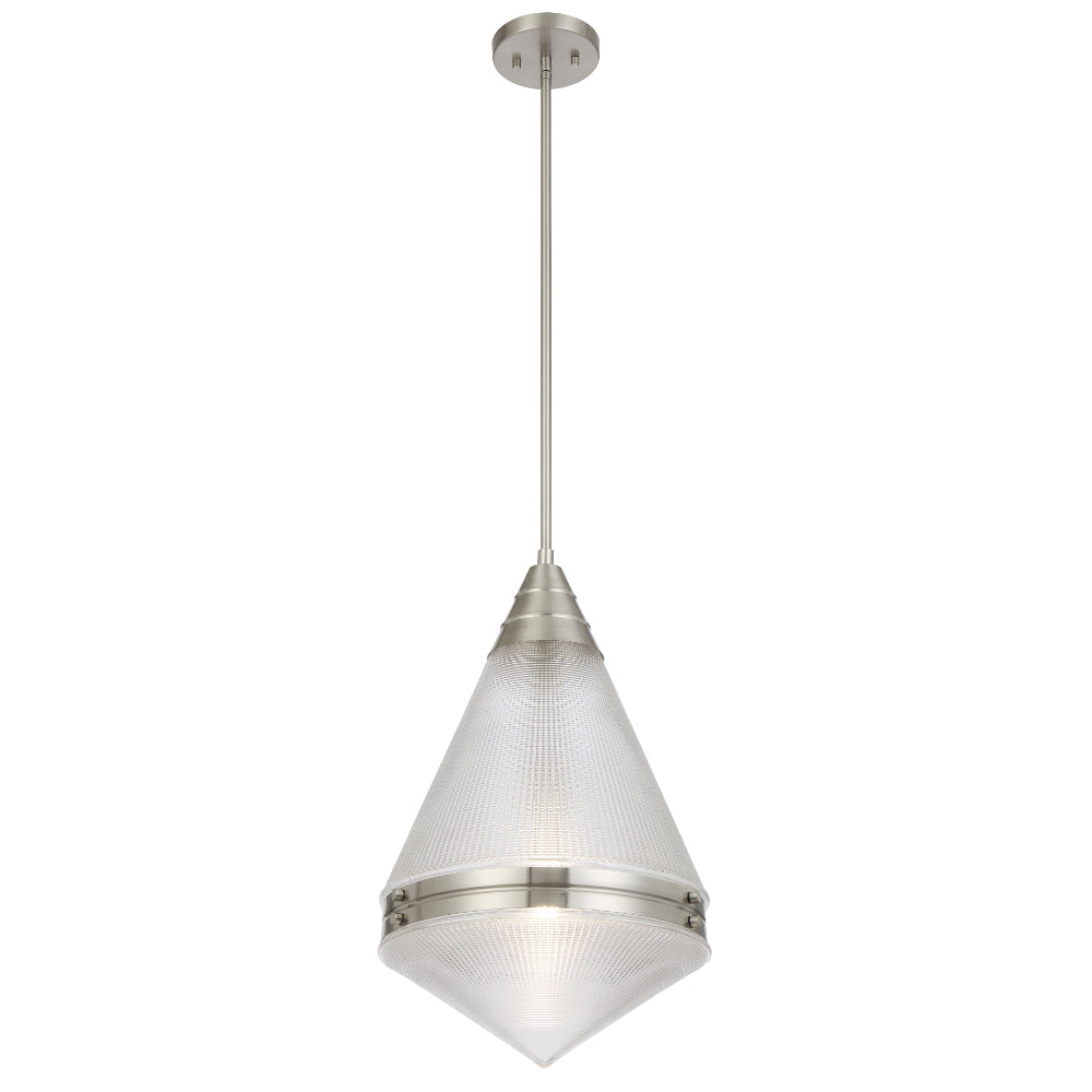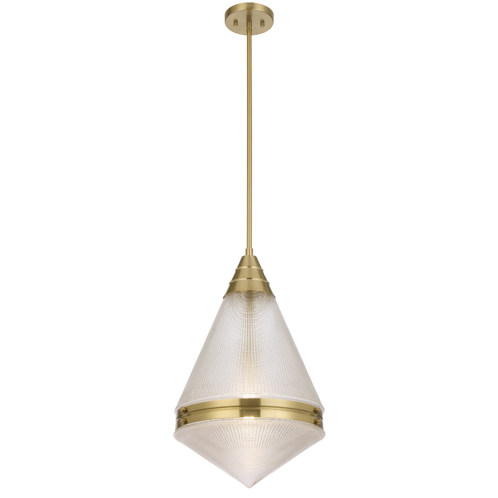 The Harnon Pendant Light blends mid-century modern and art deco influences, featuring a striking conical silhouette with textured glass for a refined, diffused glow. Available in three timeless finishes—antique gold, black, and nickel—this pendant adds elegance to any setting. Use it as a standout feature light or install in a cluster for a bold, statement-making arrangement.