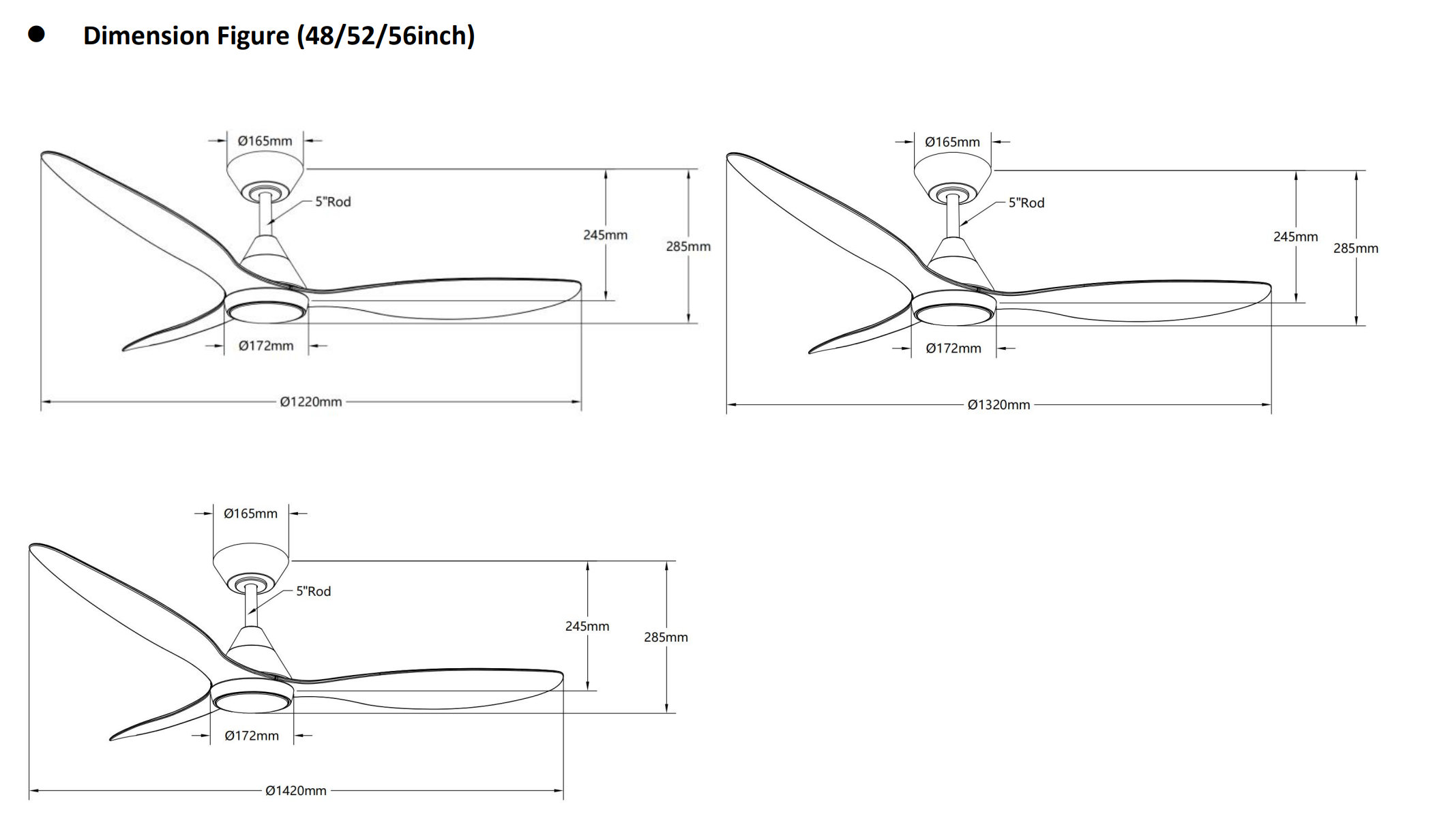 4. Function: 6 fan speed+time-delay switch +reversal fan+natural wind+ Tri-color changing( 3000K/4500K/6500K)+dimming + TUYA App control support