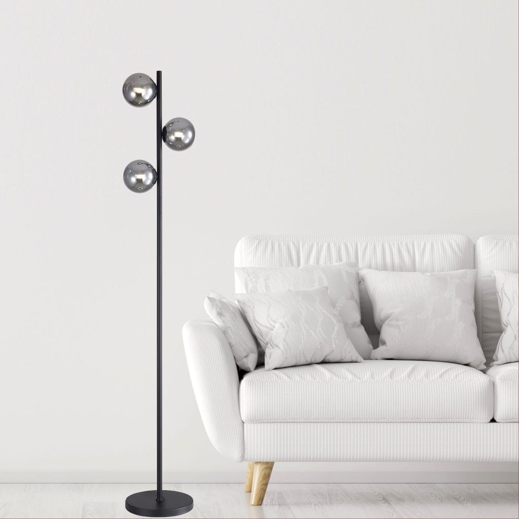 The VALCROSS decorative floor lamp, black metalware with smoke glass spheres. The iconic sphere design creates an accent piece which looks great in both mid-century modern and contemporary living spaces. Complete with low wattage LED bulbs, the diffused light creates a soft, ambient glow that’s perfect for reading nooks and relaxed living rooms.