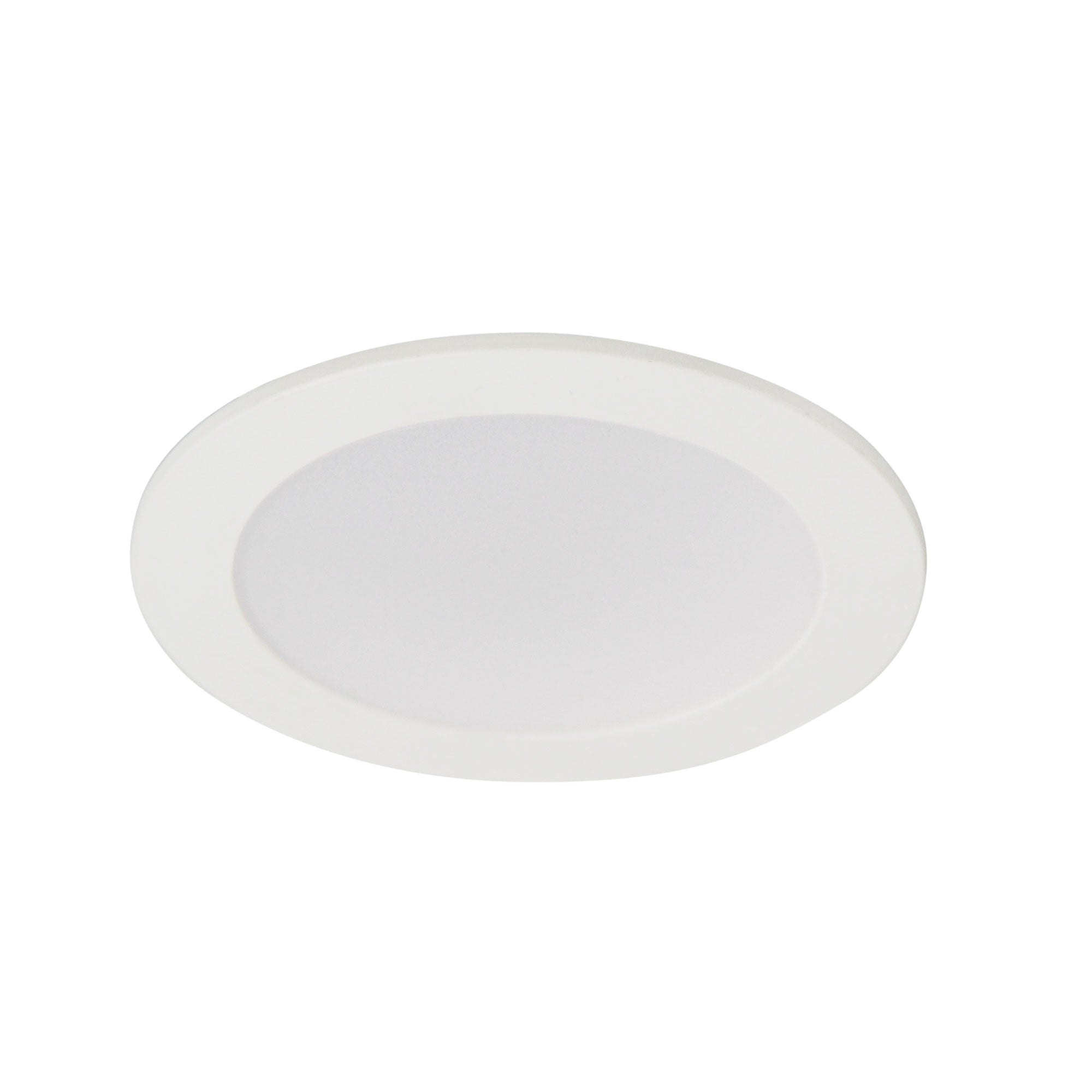 AURORA 10W LED recessed light with white trim and opaque acrylic diffuser. AURORA features CTS (Colour Temperature Switching) allowing the installer to select the colour temperature between warm white (3000K), cool white (4000K) or daylight (5700K).