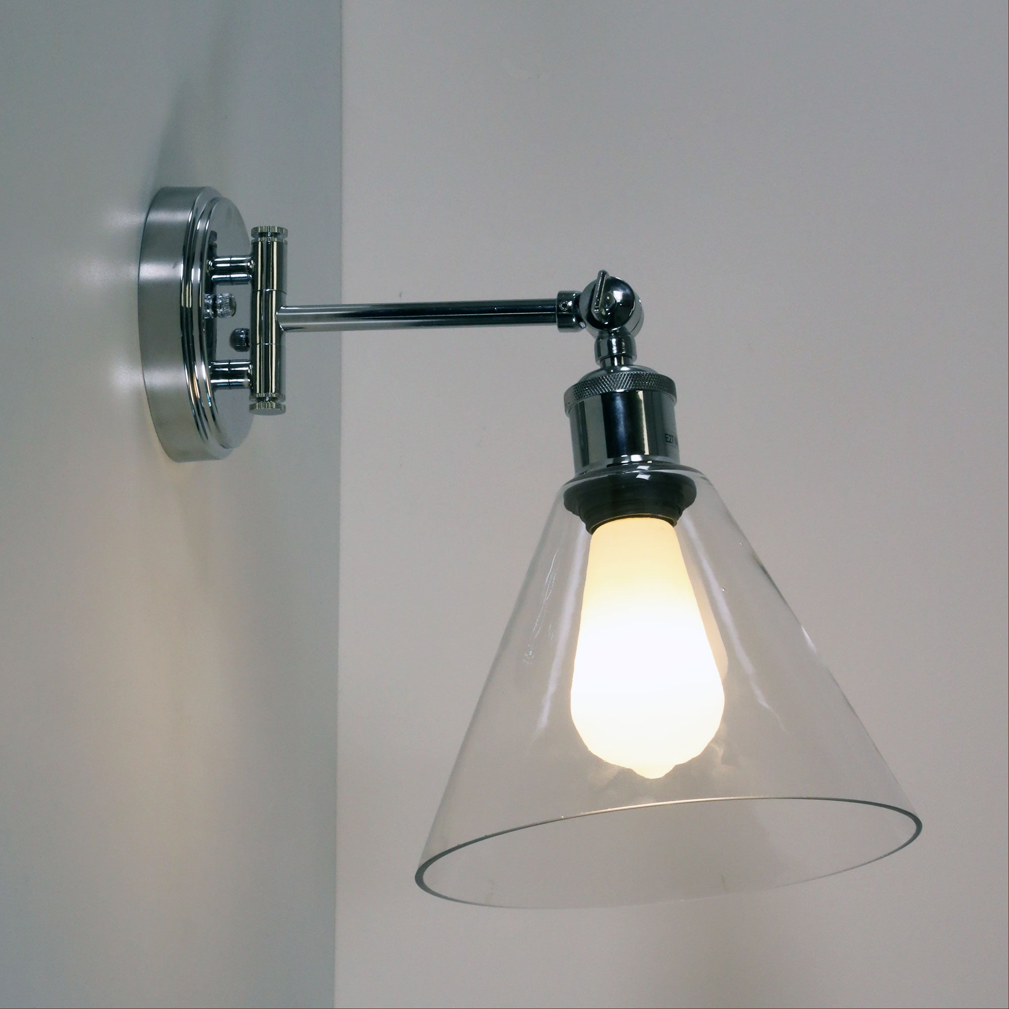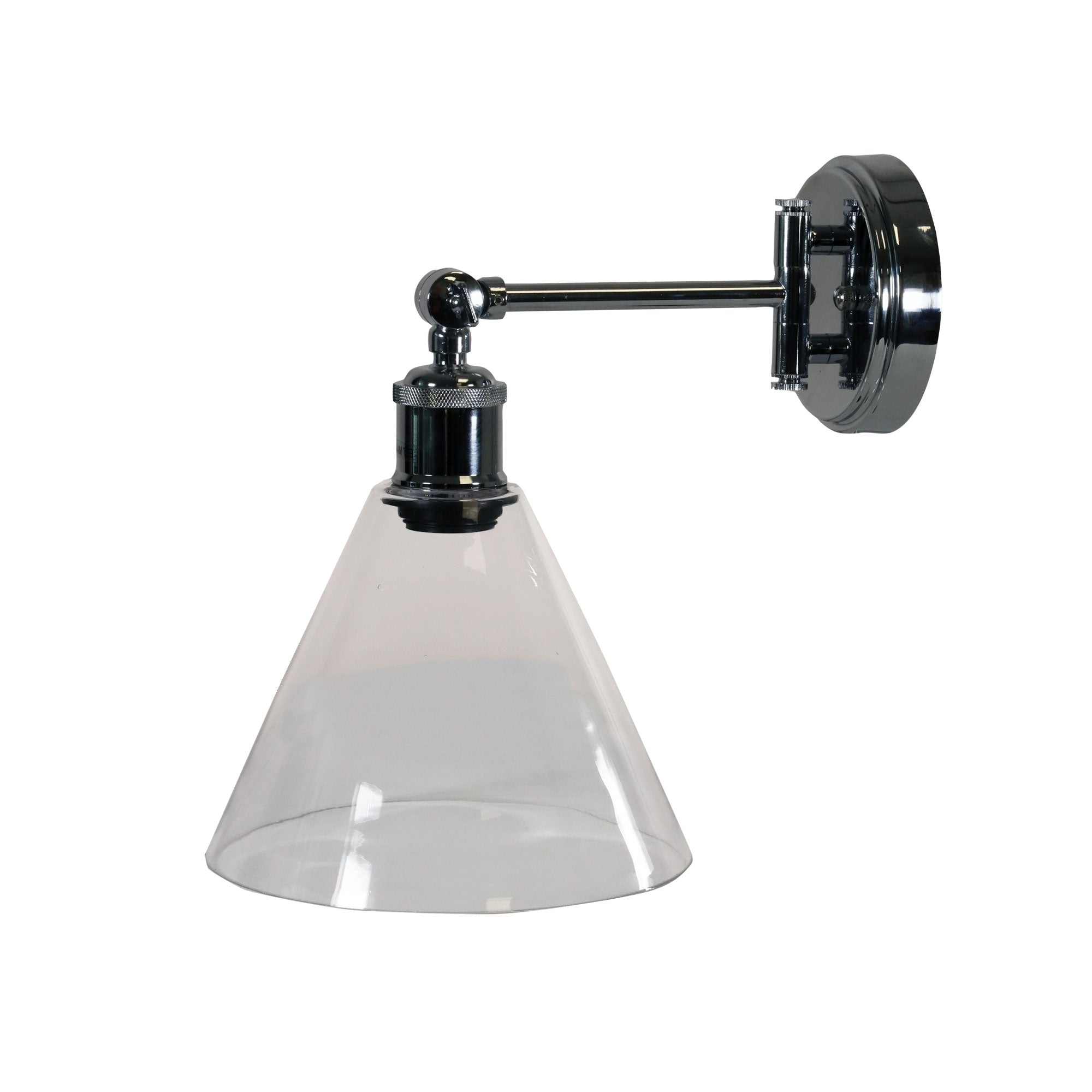 The Heath metal wall light features a swing arm and tapered clear glass shade. Supplied without a bulb, this fitting requires one E27 bulb.