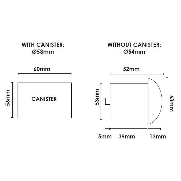 Size (without canister) |