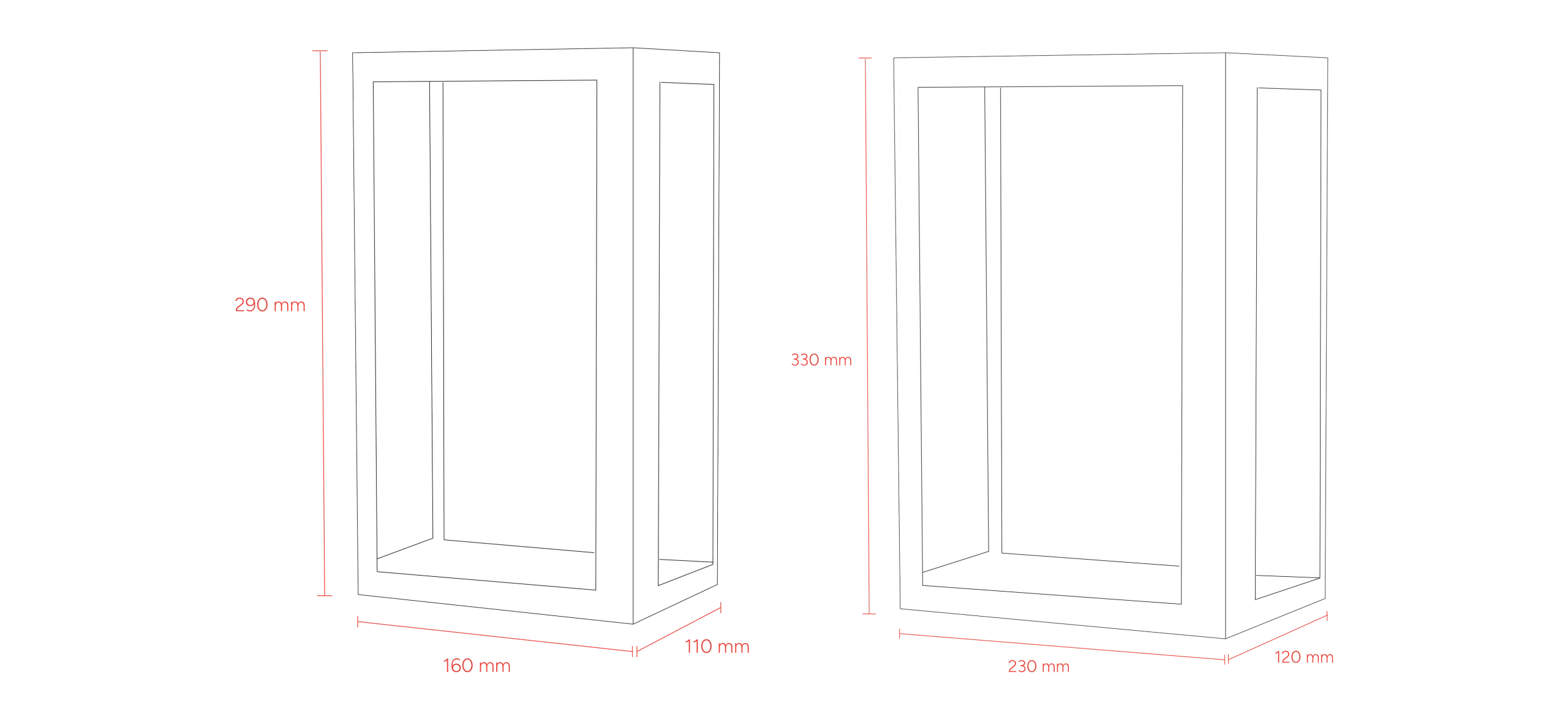 Length - 230mm x 160mm | Width - 120mm x 110mm | Height - 330mm x 290mm
