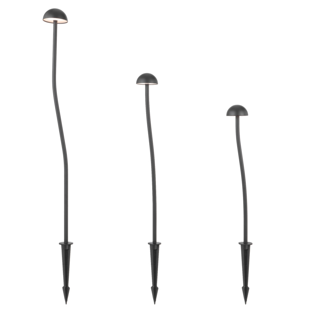 The Enoki post light set introduces a contemporary twist to outdoor lighting, featuring three curved post lights in varying heights of 40 cm, 50 cm, and 70 cm to create visual interest in garden spaces. Finished in either black sand or white sand, Enoki offers a distinctive alternative to traditional straight post lights. LED integrated with a warm 3000K colour temperature and an IP65 rating, it is designed for both style and durability in outdoor environments.