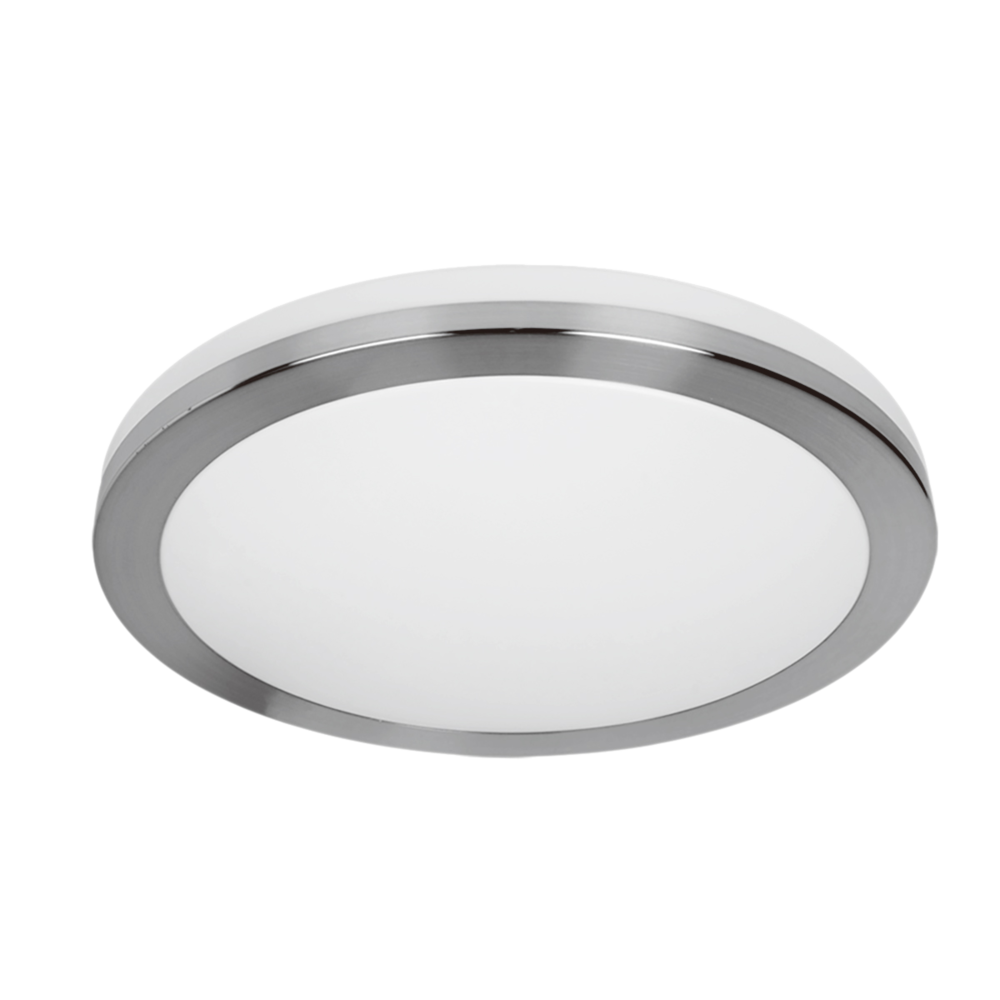 LED Oyster 8 to 30 watt satin nickel trim deco with selectable CCT, dual power and dimmable options.