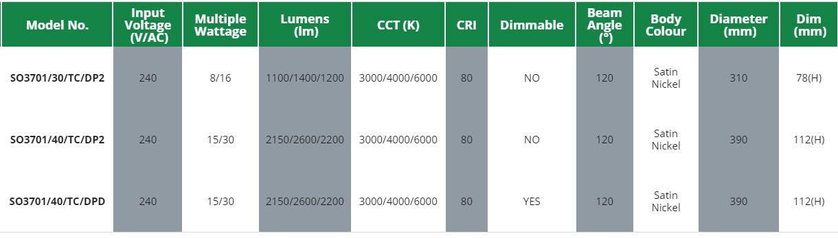 SAL Gem SO3701/TC/DP2 8 to 30W Tri Colour LED Oyster