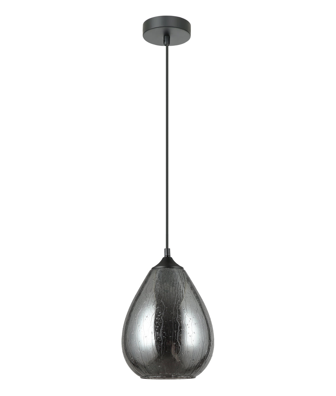 CLA Chuva Smokey Black Mirror Finish Glass with Rain Drop Effect Oval Pendant Light