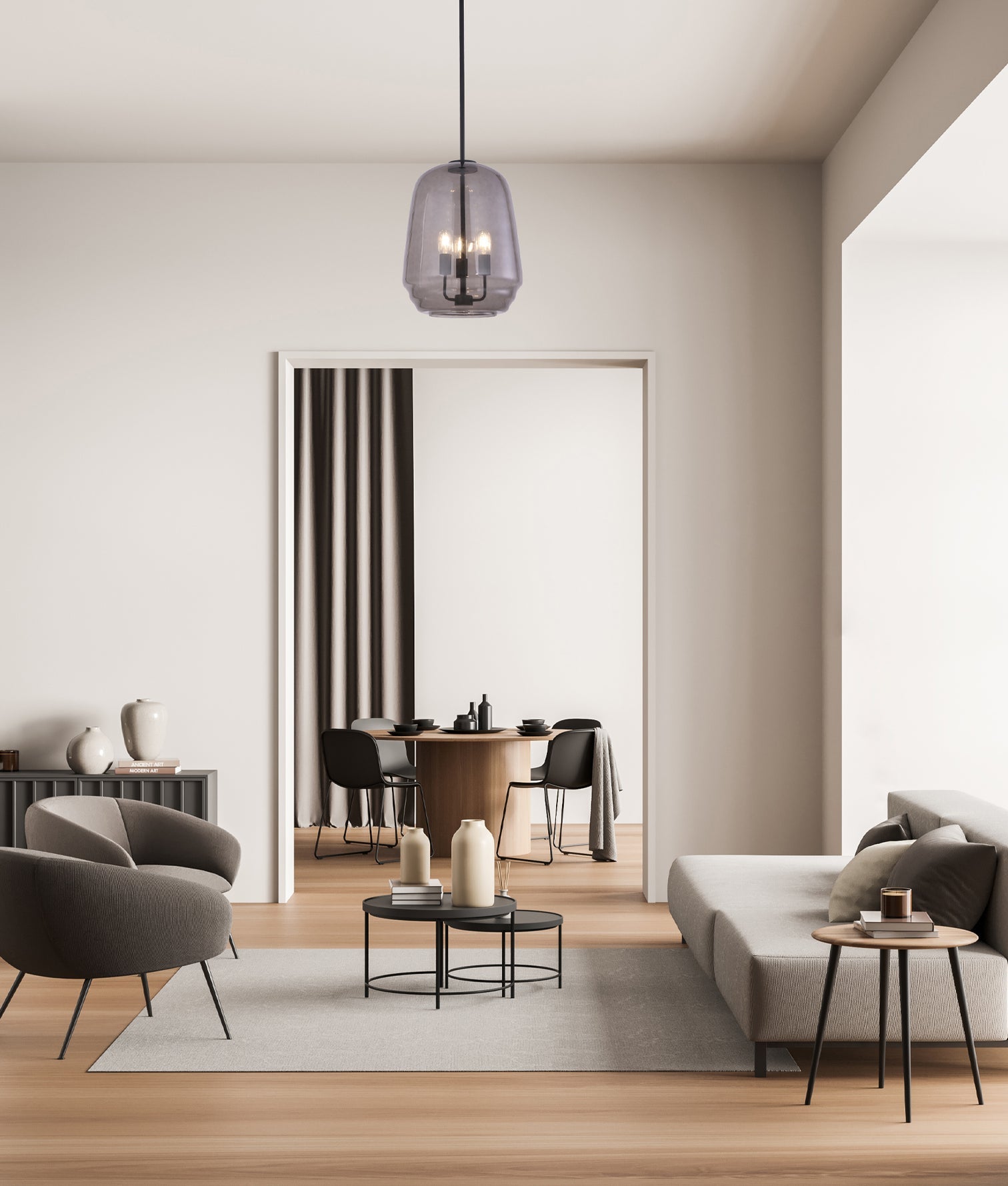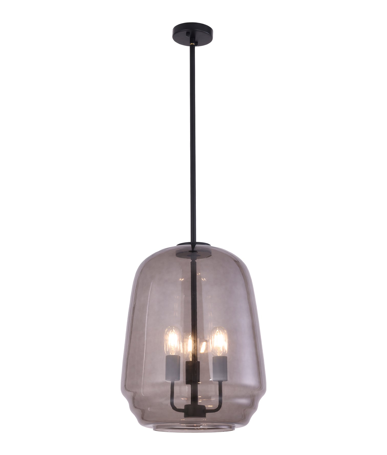 CLA CUAD Interior Smokey Black Round Pyramid Glass Shade Pendant Light