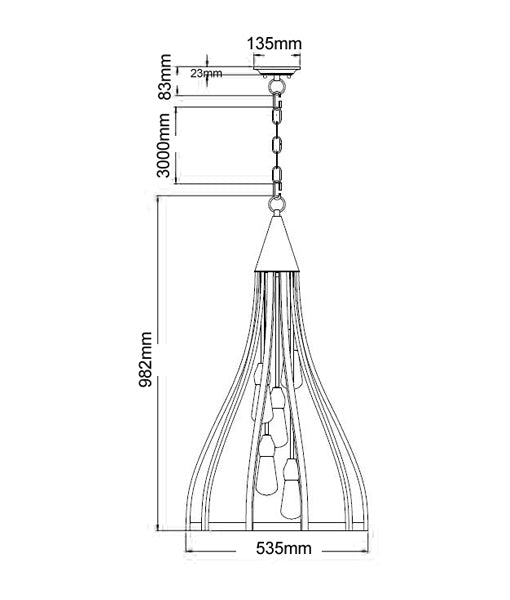 I purchased two identical light fittings for my dining and living rooms. They contain three globes which has greatly improved my light in these rooms as the previous fittings were both single globes. I am very happy with my new lights.