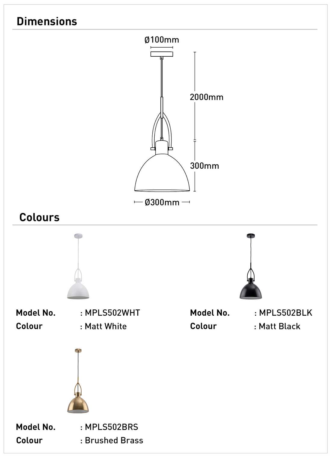 Matt Black, Brushed Brass or Matt White Metal Shade