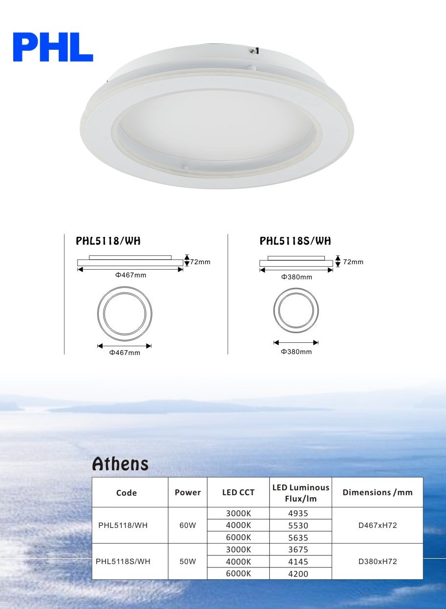 50W: D380x72 3000K/4000K/6000K 3675-4200lm