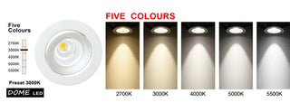 Colour Temp: 2700K, 3000K, 4000K, 5000K and 6000K selectable