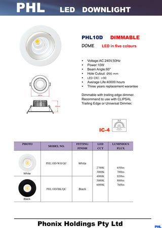 PHL10D Dome Five Colours LED Gimble Downlight