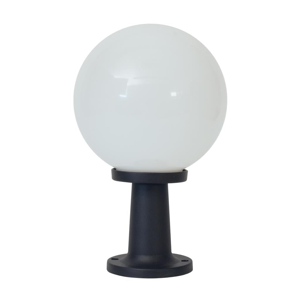 250mm diameter Polycarbonate opal sphere complete with Black Polycarbonate pillar mount base.
