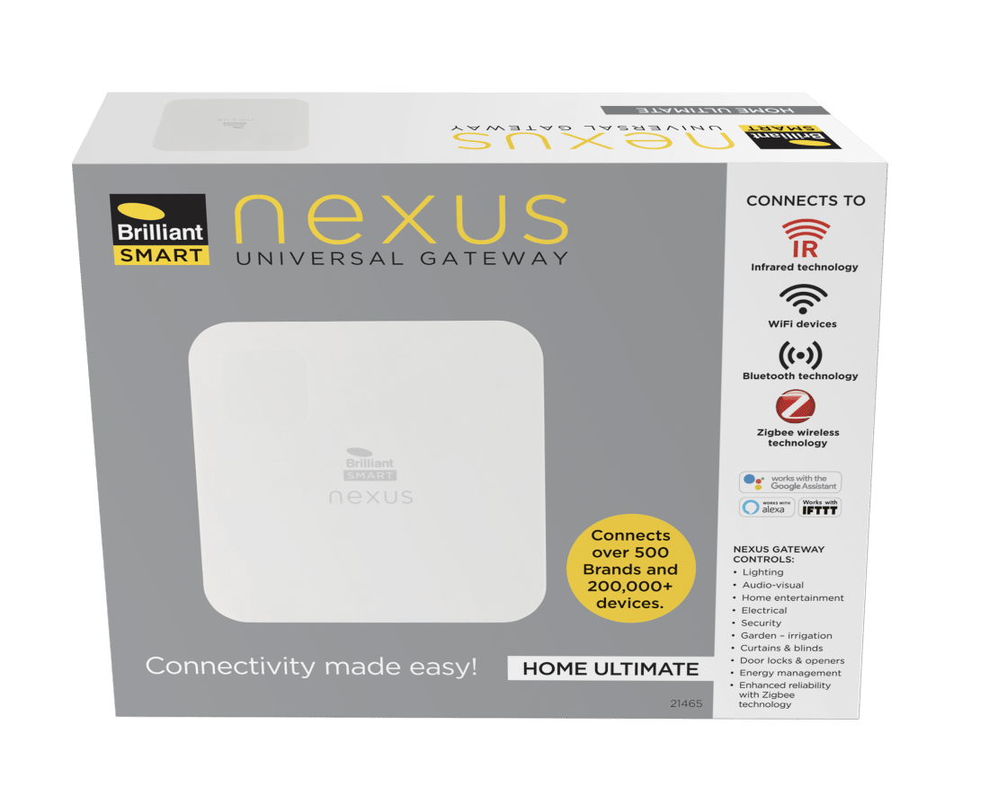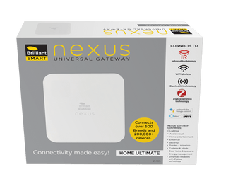 NEXUS Gateway Home Ultimate is an advanced and flexible platform for connected homes and will connect with a wide range of ever changing smart home products using WiFi, Bluetooth and Zigbee. Supporting over 500 brands and 200,000 devices it connects seamlessly with BrilliantSmart products as well as many other smart brands. Manage and control all your IR remote controlled devices, including audio/visual, heating, cooling, from one App, works with both old and new devices including new smart models. Supports Bluetooth connectivity to arm and monitor smart locks and security systems from anywhere and feel secure. Configure Actions in real time to suit your lifestyle and perform your automations with the click of a single button. Create schedules, automations and activity based rules to automate smart devices based on specific activity. Monitor your Smart thermostats, sensors and smoke sensors.