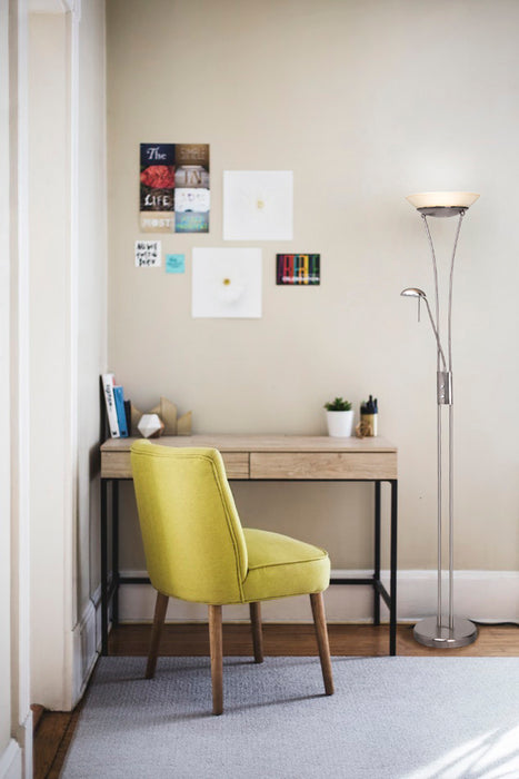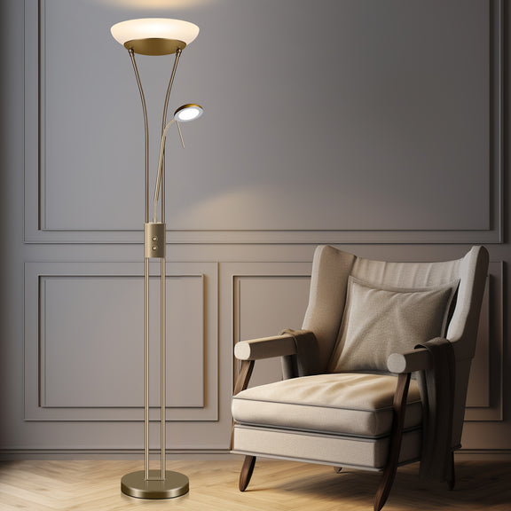 The Reed Floor Lamp is a classy home decor that utilises two lights in one lamp to bring a cosy mood to a room whilst also providing direct light to help with reading and other tasks. It comes in three stylish colours of antique brass, black and satin chrome.