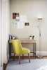 The lamp’s metal structure and solid circular base make for a stable floor lamp, whilst the bowl-shaped glass shade directs light towards the ceiling to deliver perfect ambient lighting when needed. Mid-way up the floor lamp, a spotlight stems out of the lamp’s frame and can be angled to suit with its flexible piping.