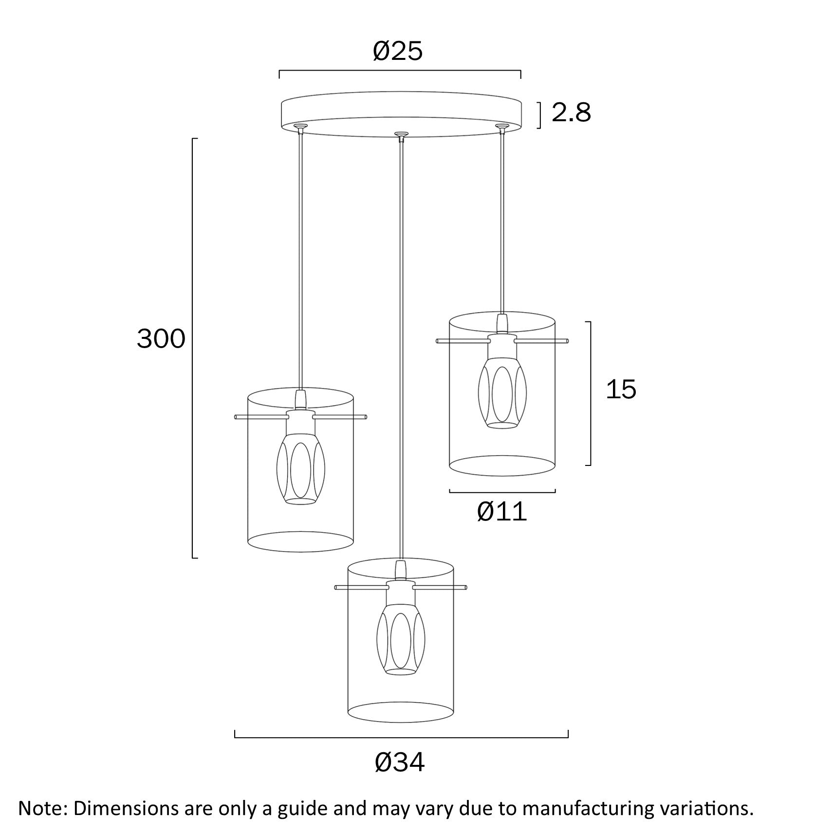 I purchased two identical light fittings for my dining and living rooms. They contain three globes which has greatly improved my light in these rooms as the previous fittings were both single globes. I am very happy with my new lights.