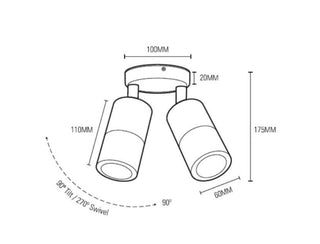 - Lamp holder: 2x GU10 MAX: 8W led or Halogen 2x 35W