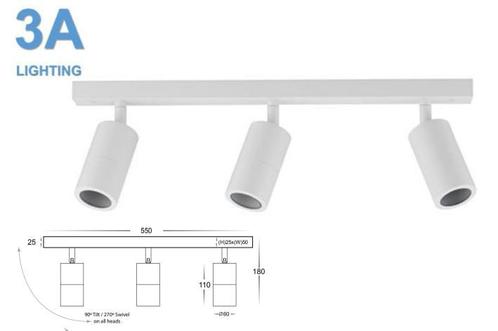 3A Lighting 3 Lights Bar Adjustable Spotlight 2143