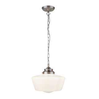 - This traditional style decorative fitting made from satin chrom metal work and opal glass.