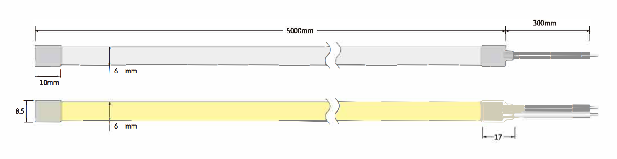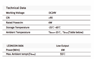 IP67 NL0606 FLEX NEON, top bend, DC24V. Cross section size 6mm x 6mm (W x