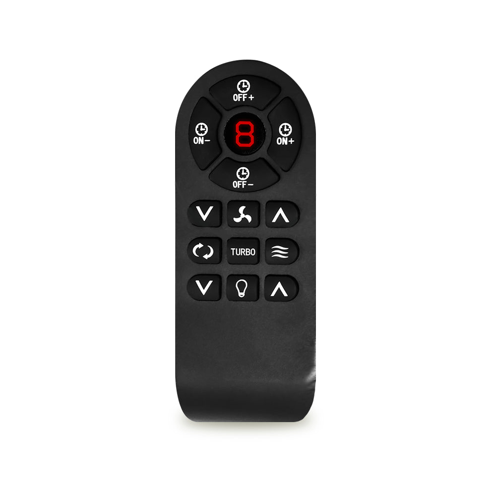 - Supplied with 8 speed remote with turbo speed function and up to 12h timer