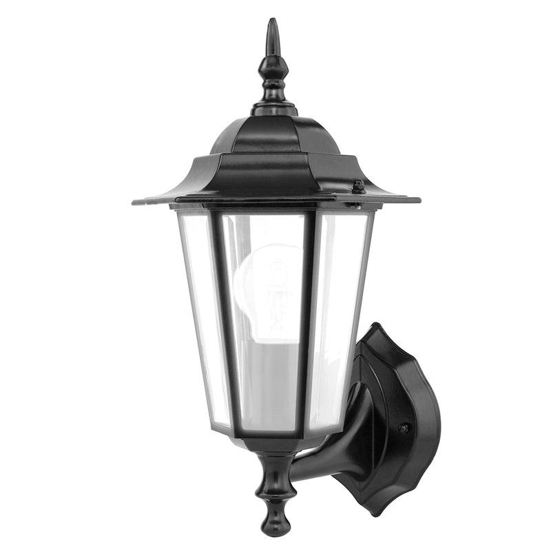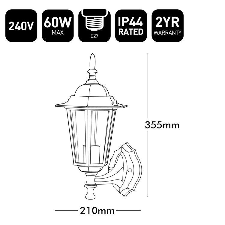Modern-styled exterior coach wall light made from durable powder-coated diecast aluminium with six clear bevelled glass panels