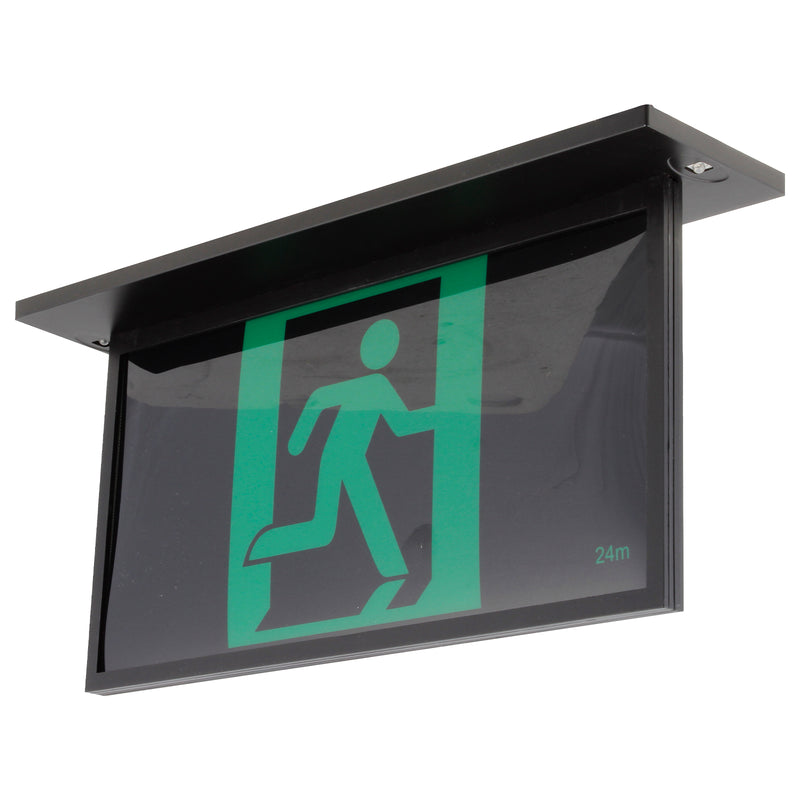 Brilliant Black Blade Recessed 2W LED Emergency Exit Sign