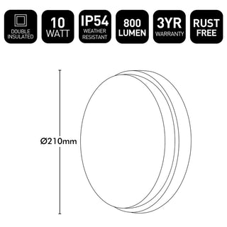 A modern, slimline round bunker wall light that illuminates exteriors with bright, even white light. The Jenkins bunker creates 800 lumens of light and has a durable, weather resistant body ensuring it will it will thrive in outdoor areas.