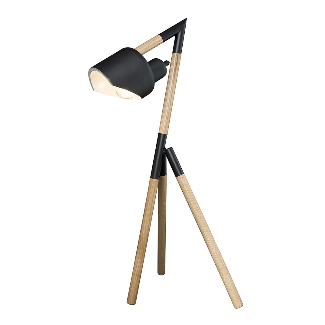 A unique interpretation of Retro revival. Inspired by the iconic 1947 silhouette of the grasshopper lamp. The Kyoto exaggerates these lines by mirroring the sharp angles of the tripod legs in the upper section. Finished with a rounded cut away shade. The dimensions have been carefully considered to act as a visual stopper. Coordinating black details have been used throughout to highlight integral junctions of this piece.