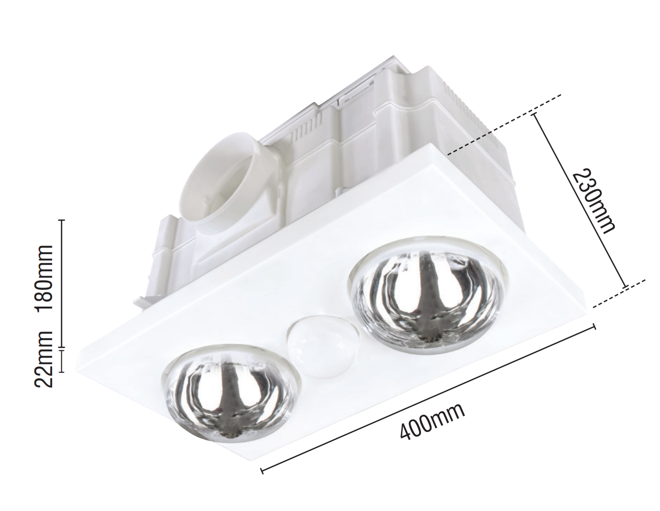 - Combines heating, lighting, and ventilation for a complete bathroom solution