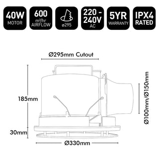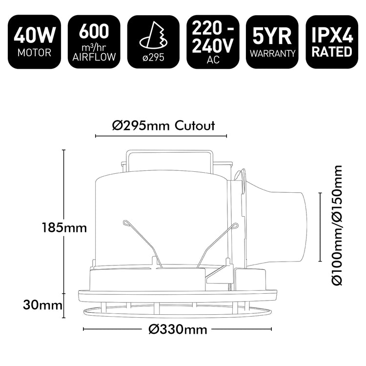 - 100mm & 150mm duct adaptor with back draft shutter included to suit any needs