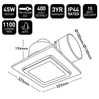 Brilliant White Sarico 325mm LED CCT Exhaust Fan