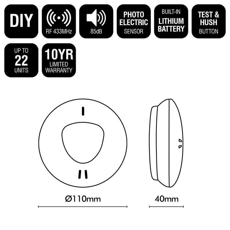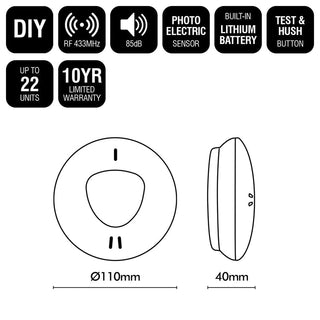 The Brilliant Smart WiFi Interconnected Smoke Alarm is a 10 year Lithium battery powered smoke alarm with an in built 2.4GHz wifi module and wireless RF connectivity. A Smart WiFi Smoke Alarm used as a coordinator or “hub” will alert everyone in your family with an early warning to each phone, even if you’re not at home. You can integrate with other smart products, like lights, to also give a visible warning in an emergency that they have been activated.
