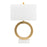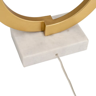 A simple beauty, the striking silhouette of the Olympic table lamp takes elegant aesthetics to new heights. A sculptural circular metal base in a gold painted finish adorns the white marble plinth. Atop with a rectangular linen look shade in warm white, the picture of stylish sophistication is complete with an elegant harp and finial fitting also in gold. With a height of 69cm, this substantial lamp creates a statement feature and oozes atmosphere when lit.