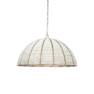 Bearing classic industrial form, our Sierra dome is given a uniquely organic style. This dramatically oversized pendant is draped in white wooden beads over an antique gold finished iron framework. Blurring the lines between modern and classic style ceiling lighting, the Sierra dome is the perfect option to harness both aspects in your space.