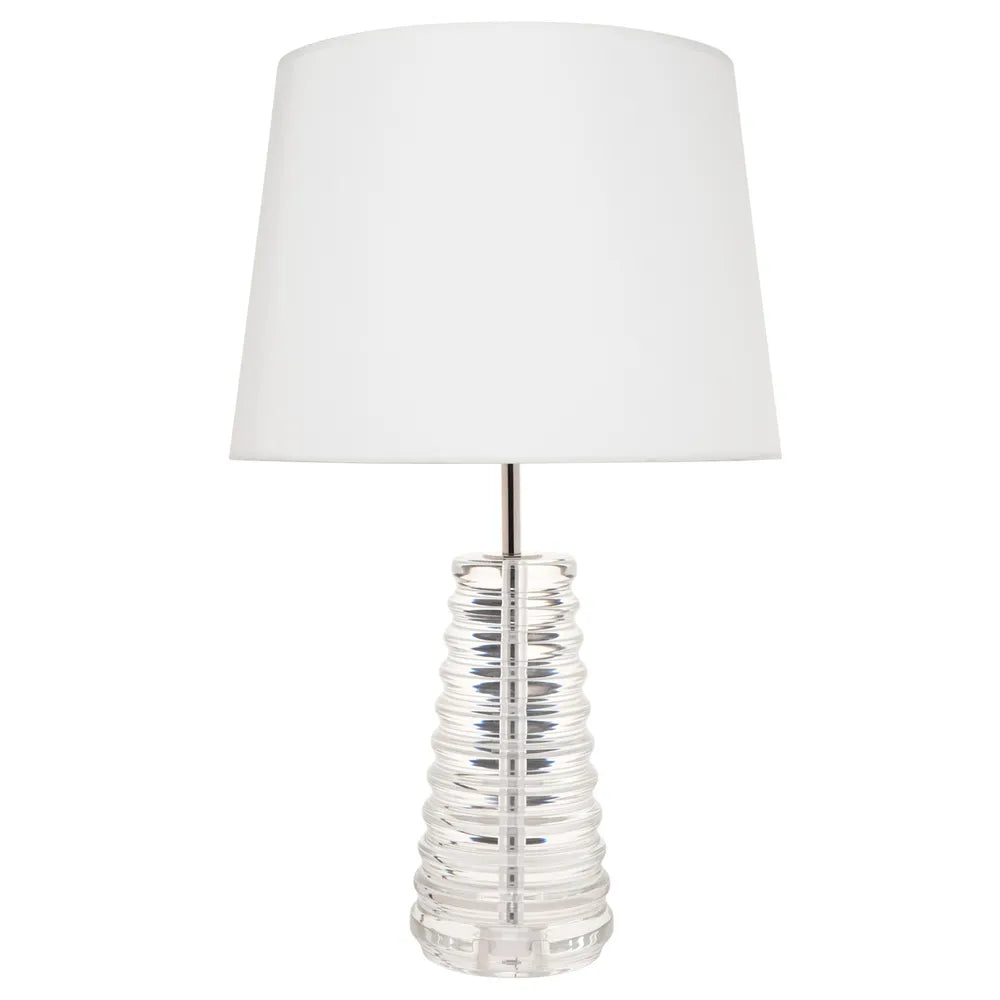 Clean and uncomplicated, the Tamara table lamp has been designed to work with both classic and contemporary interiors. Its tapered crystal rib base, nickel-finished hardware and white linen look tapered drum shade combine in perfect harmony. A substantial piece at 72cm, the Tamara table lamp offers interest to interiors with its effortless style but is understated enough to easily complement its surroundings.