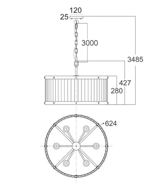 | BARRIQUE2 | PENDANT ES 6 x 60W LGE Drum Natural Wood With Oil Rubbed Bronze Hardware | Max.60 | - | 427 | Ø624 |