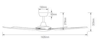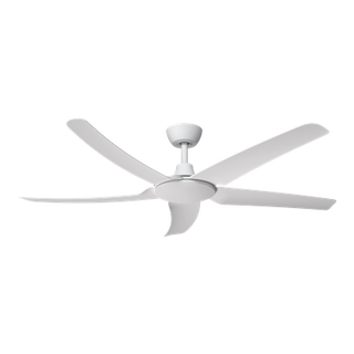 The HOVER DC Ceiling Fan Series is a modern and slimline 5 Blade ceiling fan design that offers a simplistic look which will suit most decors. Available in 56” 1420mm blade length with the choice of no light or 18W LED CCT Switchable light. Choose from 3000K Warm White, 4000K Neutral White or 6000K White via the remote control. The remote control also features a 9-speed function and fan timer and reverse Winter/Summer mode is included. Light models are fully dimmable via remote control. Constructed from ABS Polymer, the HOVER Series is lightweight, quiet and offers superior airflow. Super energy efficient DC Motor, drawing only 26W at high speed. Smart fan adaptable with a smart chip accessory, that is compatible with Google Home and Alexa. Other optional accessories include extension rods, DC Bluetooth Wall Controller as well a Ceiling Pitch Accessory for raked ceiling installations. Suitable for Indoor and Outdoor Undercover use. Backed by a 6-Year Warranty*.