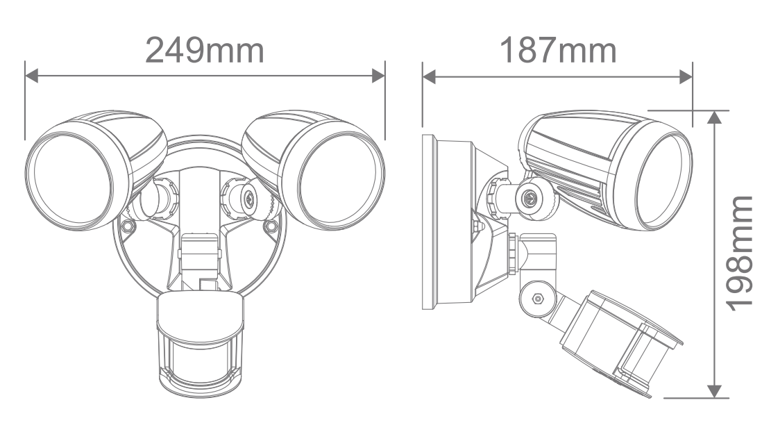 Domus MURO-PRO-30S Twin Head 30W LED Spotlight with Sensor