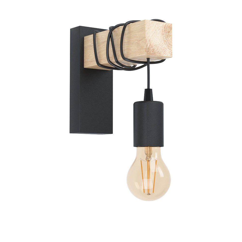 This three light close to ceiling luminaire of the TOWNSHEND series impresses with its rustic design and the material mix of black steel and light solid wood. Pair with LED filament globes to complete the look.