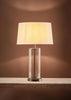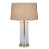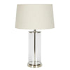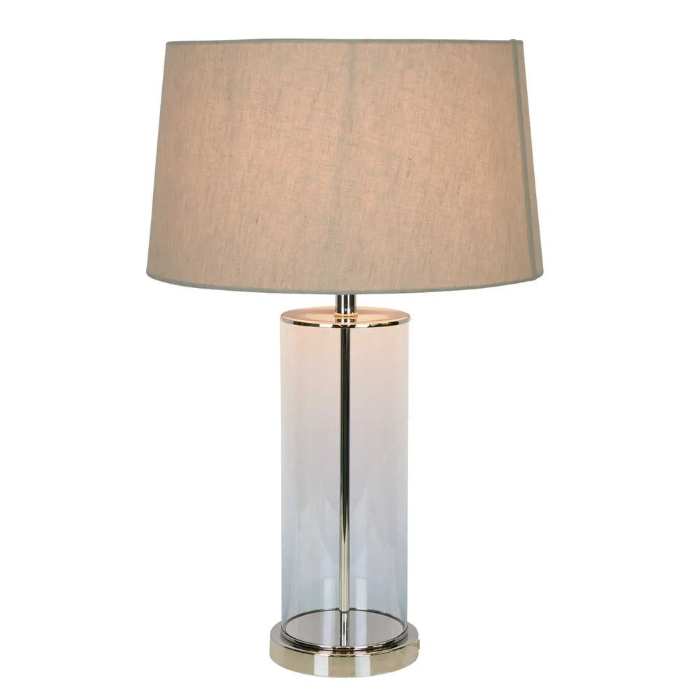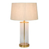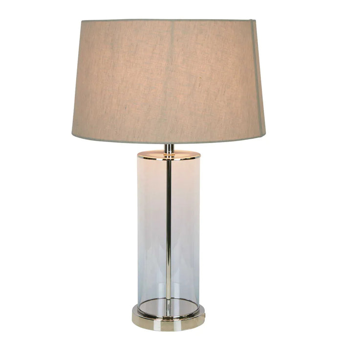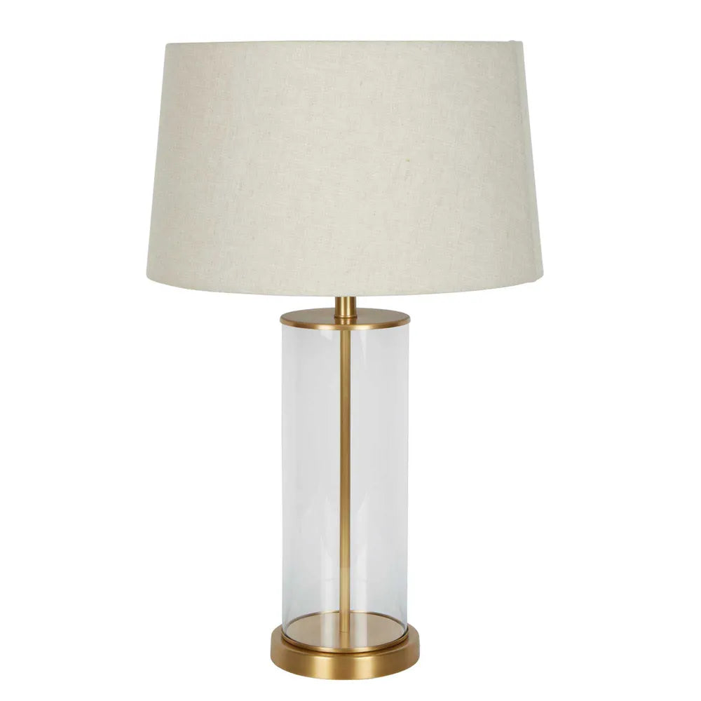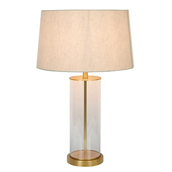 Our Iris is traditional style table lamp featuring antique brass/nickel/black with clear glass column base and sat on metal base.