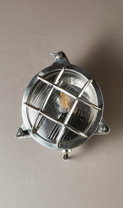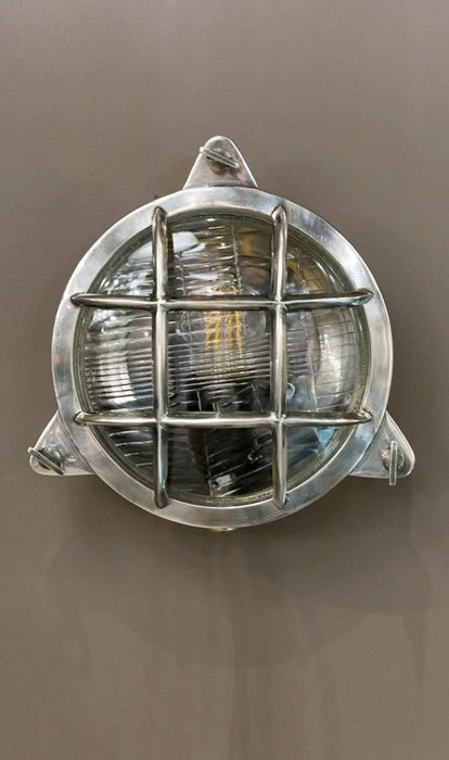 Our Palmerston outdoor wall lamp is marine nautical wall light with opal plexiglass cover with clear rib glass that adds nautical charm into indoor or outdoor industrial style space.