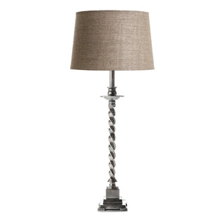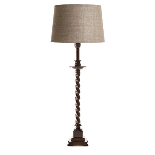 Repurposing a gate rail that once accented a building, our heat forged lamp features a tapered top, twisting stem and a rustic iron age finish.
