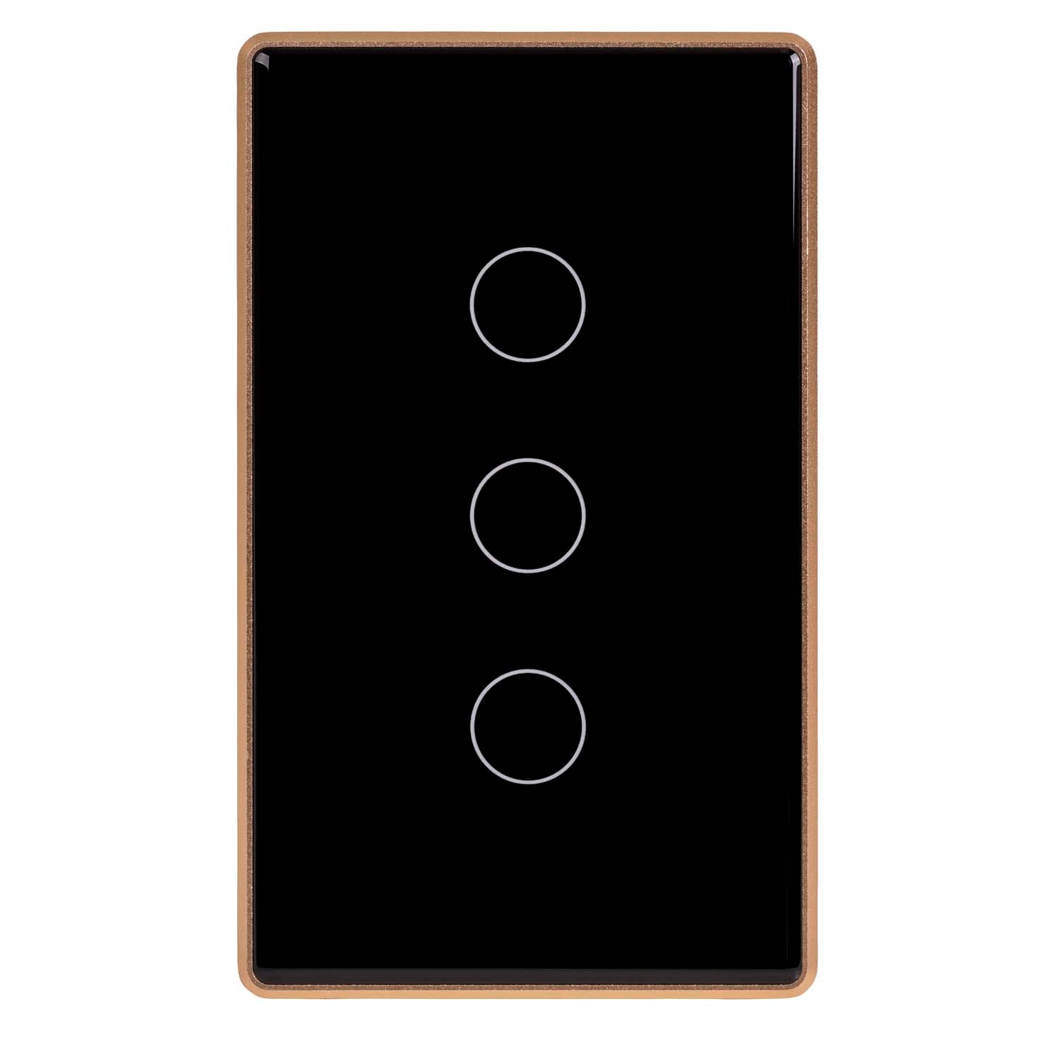 - 3 Gang Black with Gold Trim Wifi Wall Switch