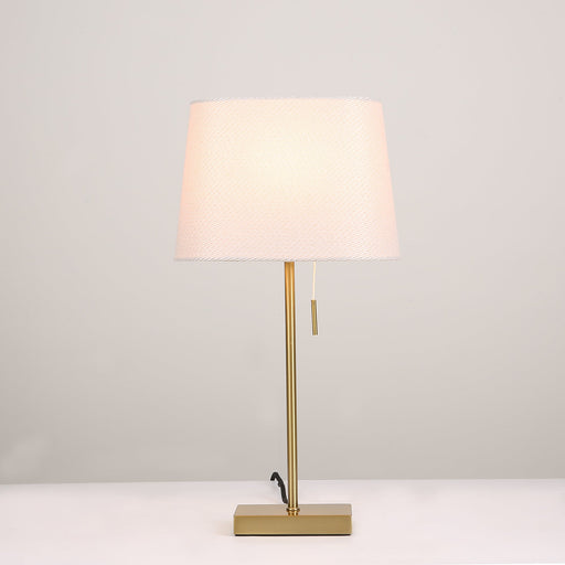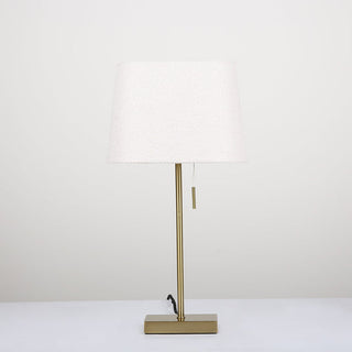 The metal inverted triangle exit ensures smooth, abrasion-free operation for long-lasting use. With its stylish blend of a fabric lampshade and warm brass metal stand, this lamp perfectly combines modern and traditional design, adding a touch of mid-century charm to your home or office décor. Its heavy-duty metal base provides superior stability, preventing accidental tipping by children or pets, while the compact rectangular base is ideal for small spaces like nightstands, kids' rooms, or narrow sofa tables.