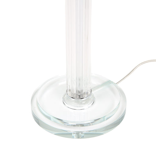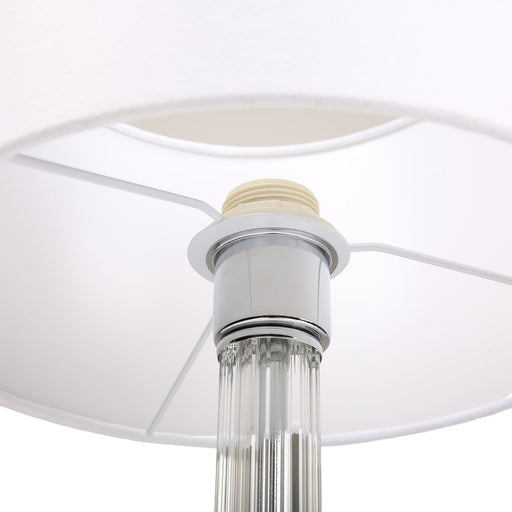 Ideal for formal entryways, living areas, or dining rooms, the Cosima Table Lamp Lamp is both elegant and functional. Clear glass rods surround the column and are highlighted with antique sliver details. The white fabric shade and cylindrical finial add the finishing touch to the sophisticated design.
