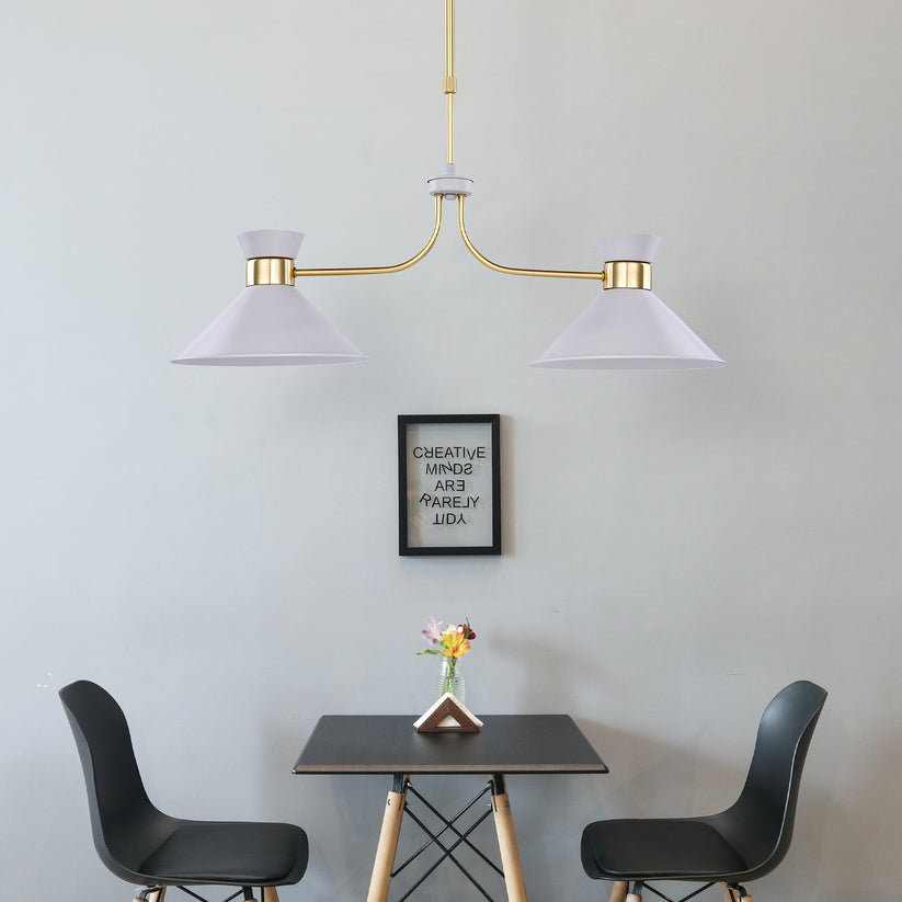 These versatile lights come in a single or two-light hanging pendant. The single pendant offers a minimalist design featuring a classic cone-shaped lampshade with a simple but stylish central gold band.