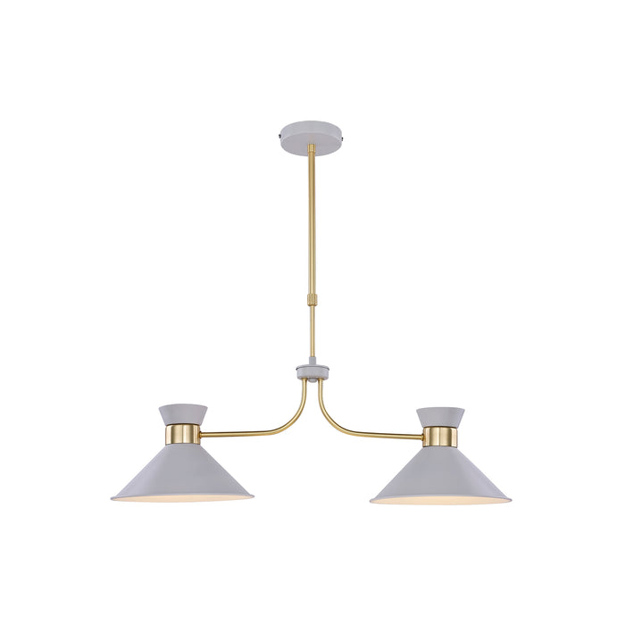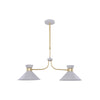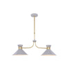 In contrast, the elegant double light Baina pendant features a single luxurious golden central stem from the white ceiling mount. Two curved gold stems stretch out from the centre hub supporting the matte-white coned lampshades, which offer a perfect feature light to match your single pendants strewn through the rest of the room or property.